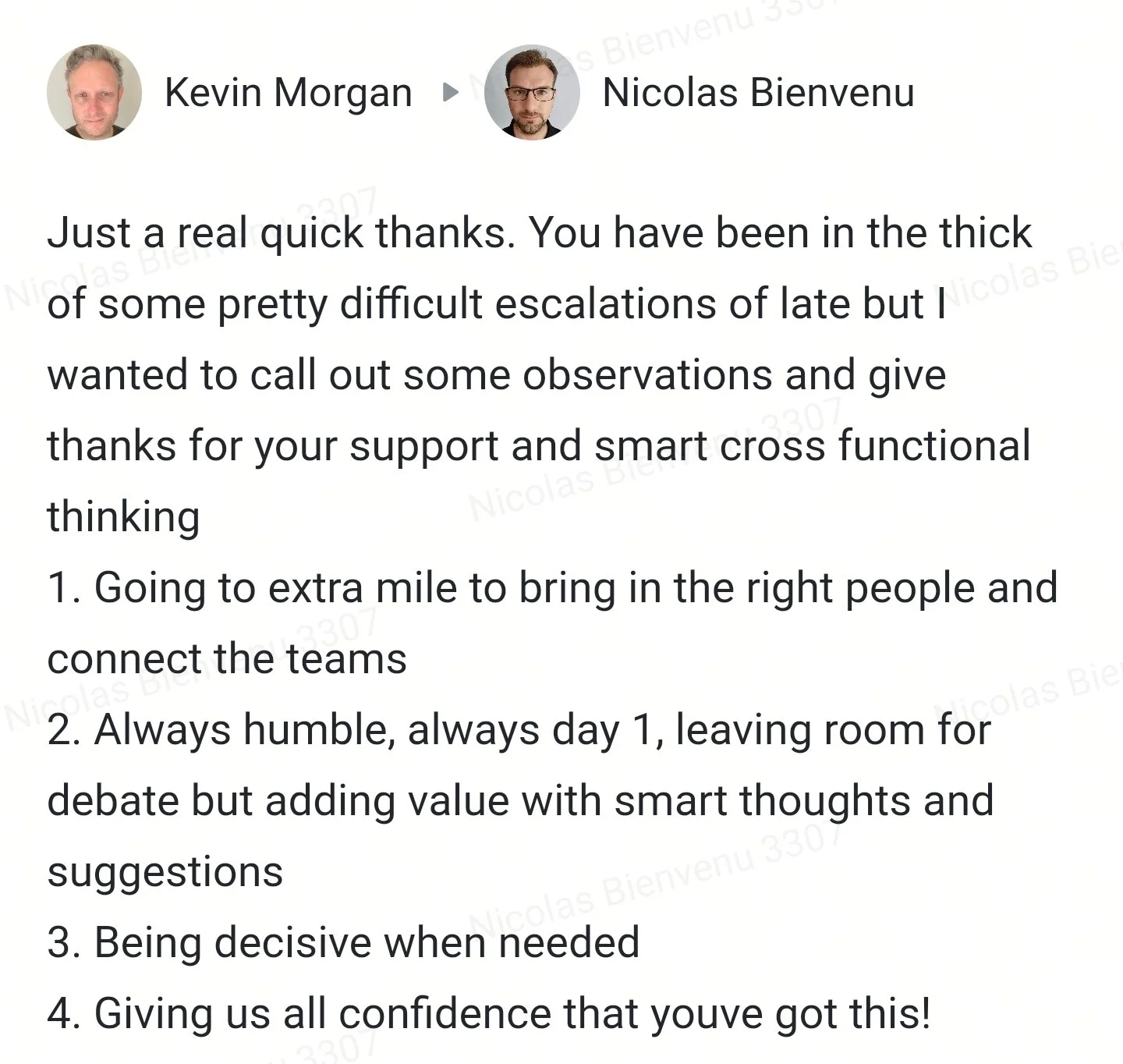‘‘We were both working for the Trust and Safety Department chasing bugs and escalating them to the most relevant engineering team. It has always been an honor for me to work with Nicolas since he is very hard working, motivated, dynamic, with the "can do" attitude and an excellent team player. Good luck to you Nicolas!’’